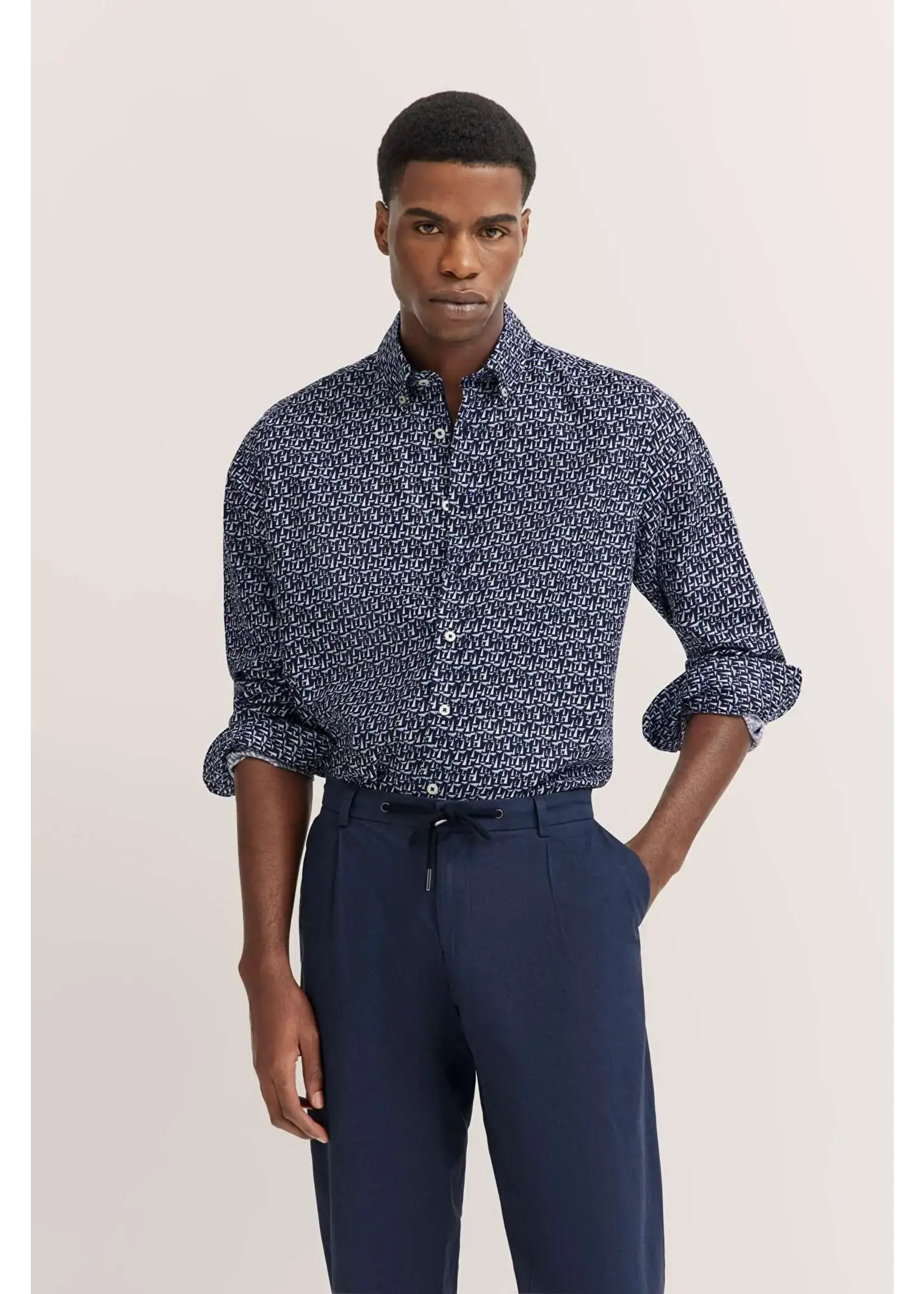 • BUGATTI Chemise Bugatti imprimée voiles ML à boutons au col